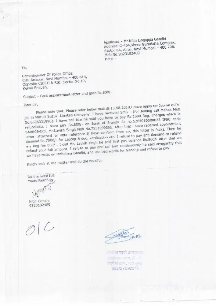 Beware of Quikr.jobs Scam: Fraudulent Registration Fees for Job Applications