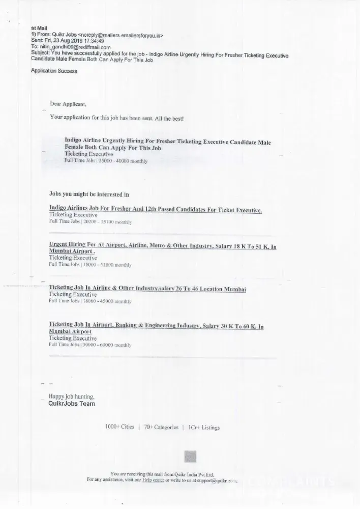 From: Quikr Jobs on Fri, 16 Aug 2019 16:50:47 Add to address book