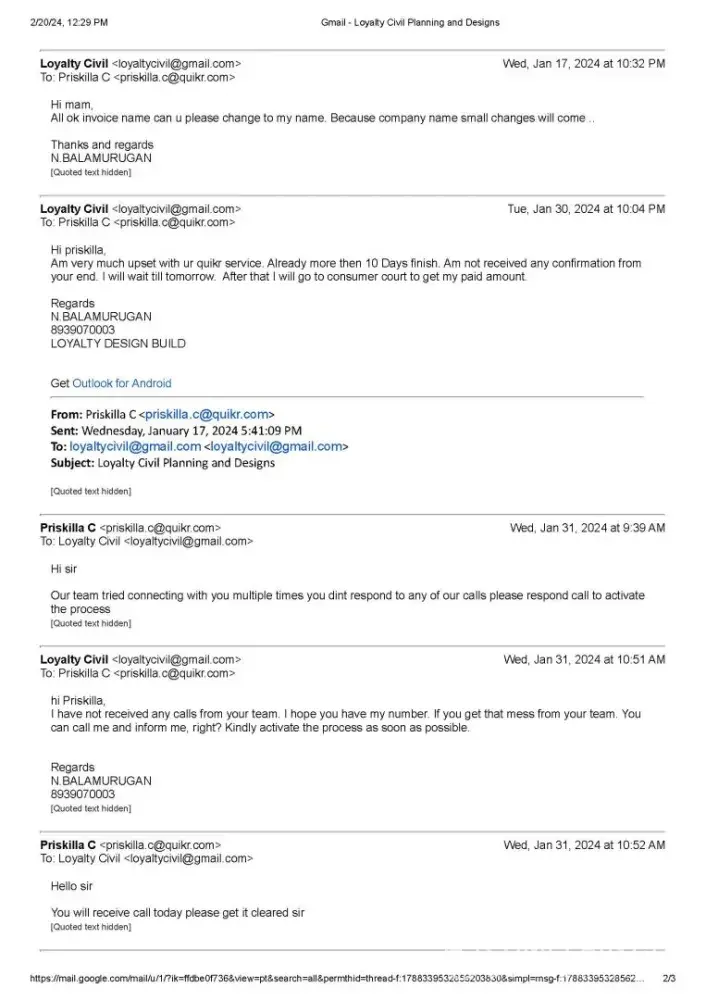 Firstly, despite receiving a message stating that I would be contacted within 24 hours of payment, I did not hear from Quikr for two whole days. When I finally decided to call them myself, they seemed unaware of my payment at first, but later assured me that they would get in touch with me soon.