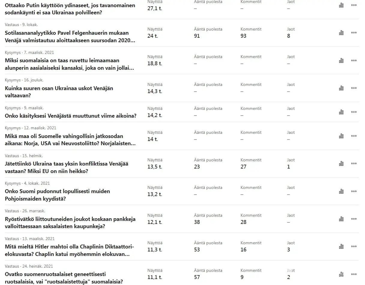 This year the main theme has been the Russian invasion of Ukraine. A few week back your moderator, Elena Liski, disactivated my account and later disabled the possibility of commenting in any language.