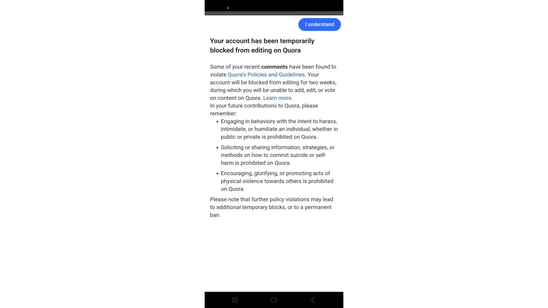 The 2 week block on my profile for defending myself from narcissistic abuse is not going to stand.