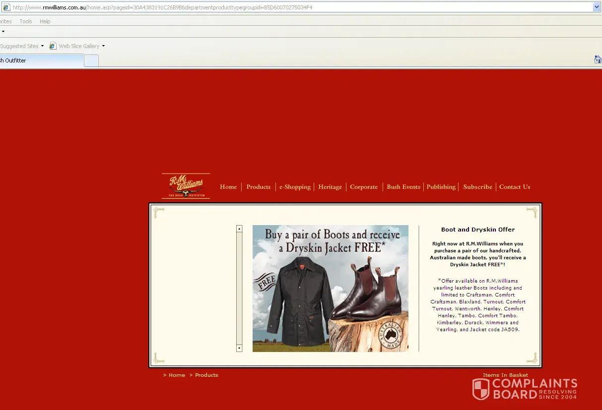 I sent the following to RM Williams as I believed I was eligible for their promotion and they have refused point blank to honour (I also have a receipt):