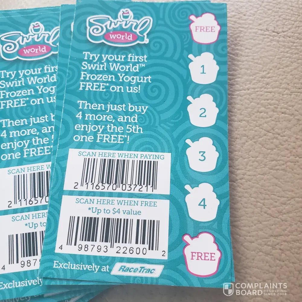 I bought a racetrac cup that was completely factory sealed and it had swirl world coupons and free refill coupons the coupons do not have an expiration date on them I tried to use the swirl world coupons at the only racetrac with a swirl world in my area and the manager was a little rude and told me I couldn't use the coupons but couldn't give me an...