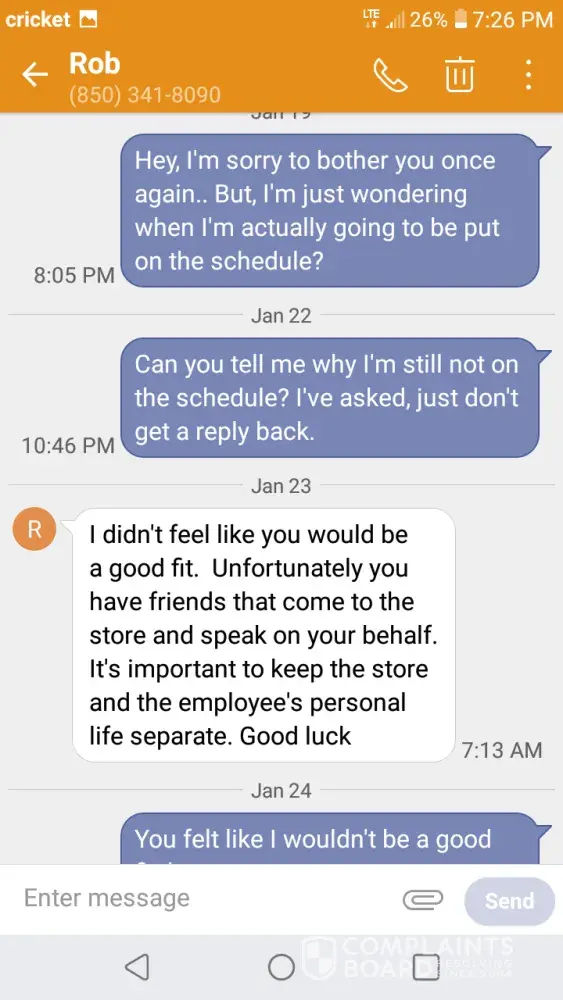 Read full complaintnot getting a fair chance