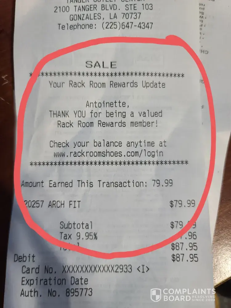 Rack Room Shoes Store/employee complaint for rewards going to the employee