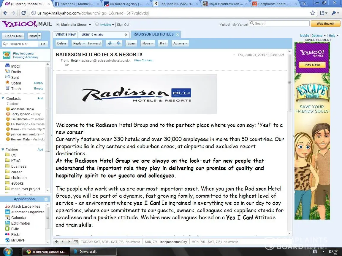 I have received a mail from Radisson BLU hotel & resorts regarding job.please find the attachments and reply me soon as soon as possible and tell me whether its fake or not.