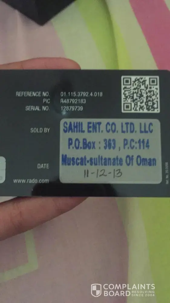 I purchased a Rado watch from your retailer AL HAMMADI ( AL Jubail - Saudi Arabia)