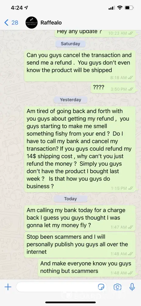I have ordered an item from Raffaello Network and was really excited about my purchase, because I loved the products and their prices! Later they contacted me and said that my order was not in stock and offered me a refund. I was really disappointed but I agreed since there was no other option. Waited two weeks and did not get any money. Every time I contacted them I got only empty promises and nothing else.