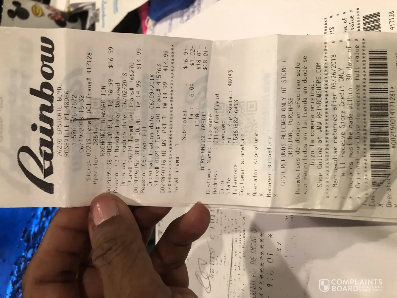 I walked in rainbow at about 7:45 pm on 5/24/18. asked for help From something on the wall . Got attitude from the lady . As she was walking to get a stick she said damn clothes on the wall now ! I told her sorry for the inconvenience she said just not in a good mood .
