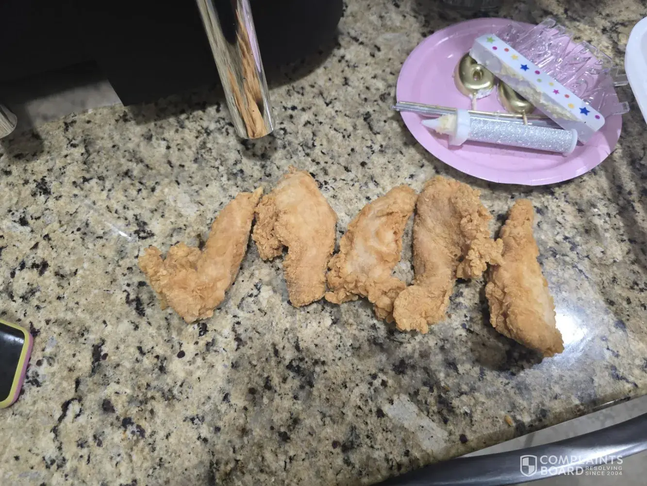 Purchased the 6pc chicken in Clarksville TN on Wilma Rudolph. Bought to take to my daughter in Alabama because it's her favorite chicken and there isnt a Raising Canes here. She was very excited when she seen what I brought her to only find out there was only 5 pieces of chicken. As expensive as it is I don't appreciate being shorted. May not seem like much to you but to me it is. Very disappointed. 1/18/26 2:25pm