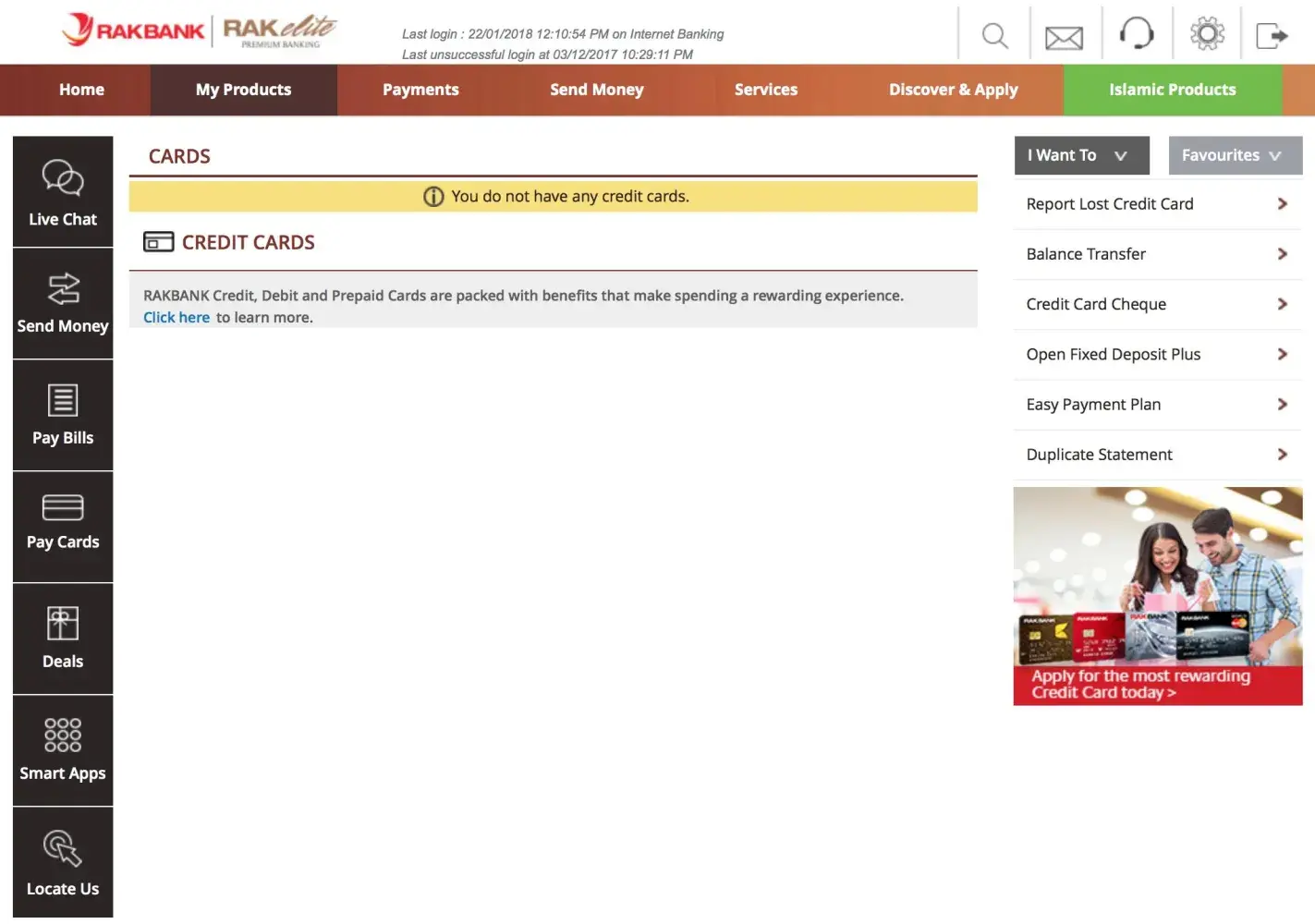 Moreover, my card has not been working for two days and I need it ASAP. Also, it disappeared from my online banking page. (photos attached) I contacted RAKBANK and they told me "you'll receive the call back in 1 to 2 working days".