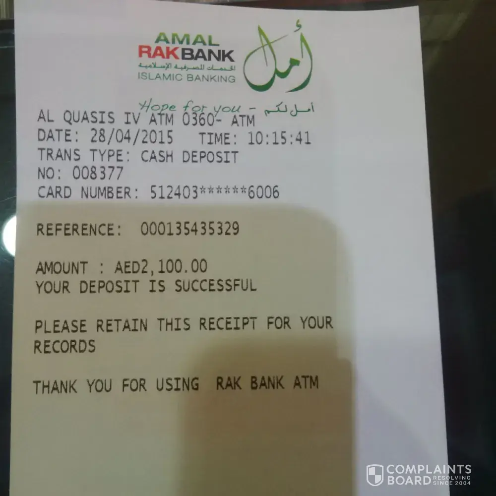 My name is Umesh Gharat from India, Mumbai. I was the RAK bank credit card ( [protected] )user in Dubai, i lost my job due to recession and back to india in march 2011, without paying credit card outstanding due to some financial issue. After 2 years i received Email from Mr.Faisal Iqbal, RAK BANK Collection & Recovery - PB Credit, for credit card payment. I propose him for minimum full & final settlement amount and he agreed for that. Later on i paid 4, 200 dhs within 2 installment and then asking for NOC / settlement latter but Mr. Iqbal did not replied me. I tried several time by writing email to him but still no update on this matter. Lets have look on all that email and payment detail which i have done from RAK bank ATM machine at Dubai & Sudi arab.