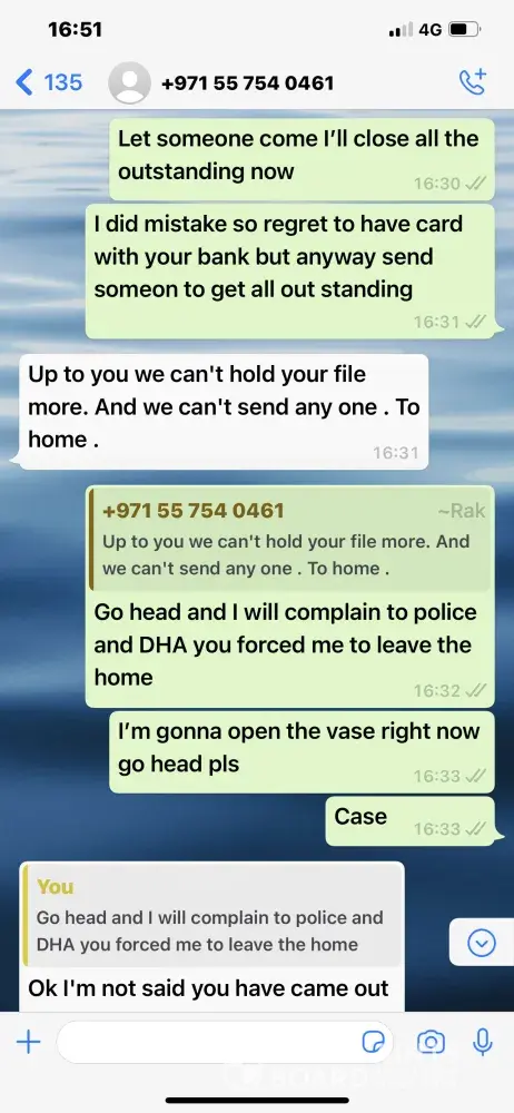 The customer care told me to go to the RAK Bank, which I visited and explained the situation with all the necessary documents. At the bank they assured me that this will be resolved and waive off the outstandings.