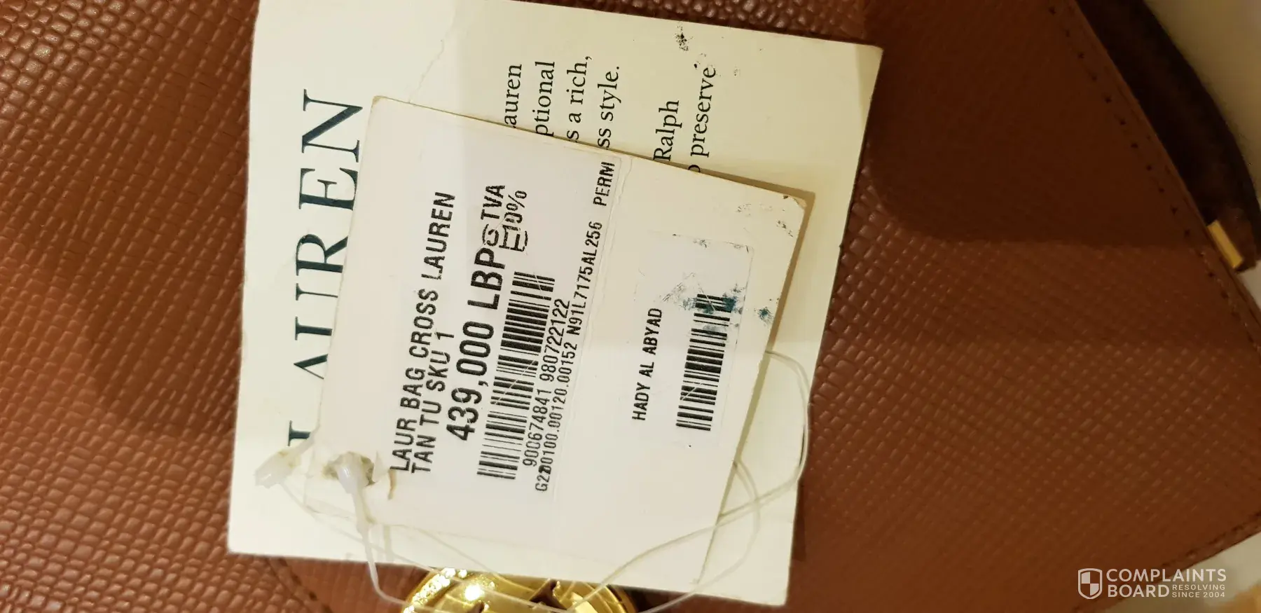 I have had a quality issue with a lauren by Ralph Lauren bag that I purchased in Lebanon from BHV. However BHV refused to repair the damaged bag, that shows a very low quality of material used as the handles are almost detached.