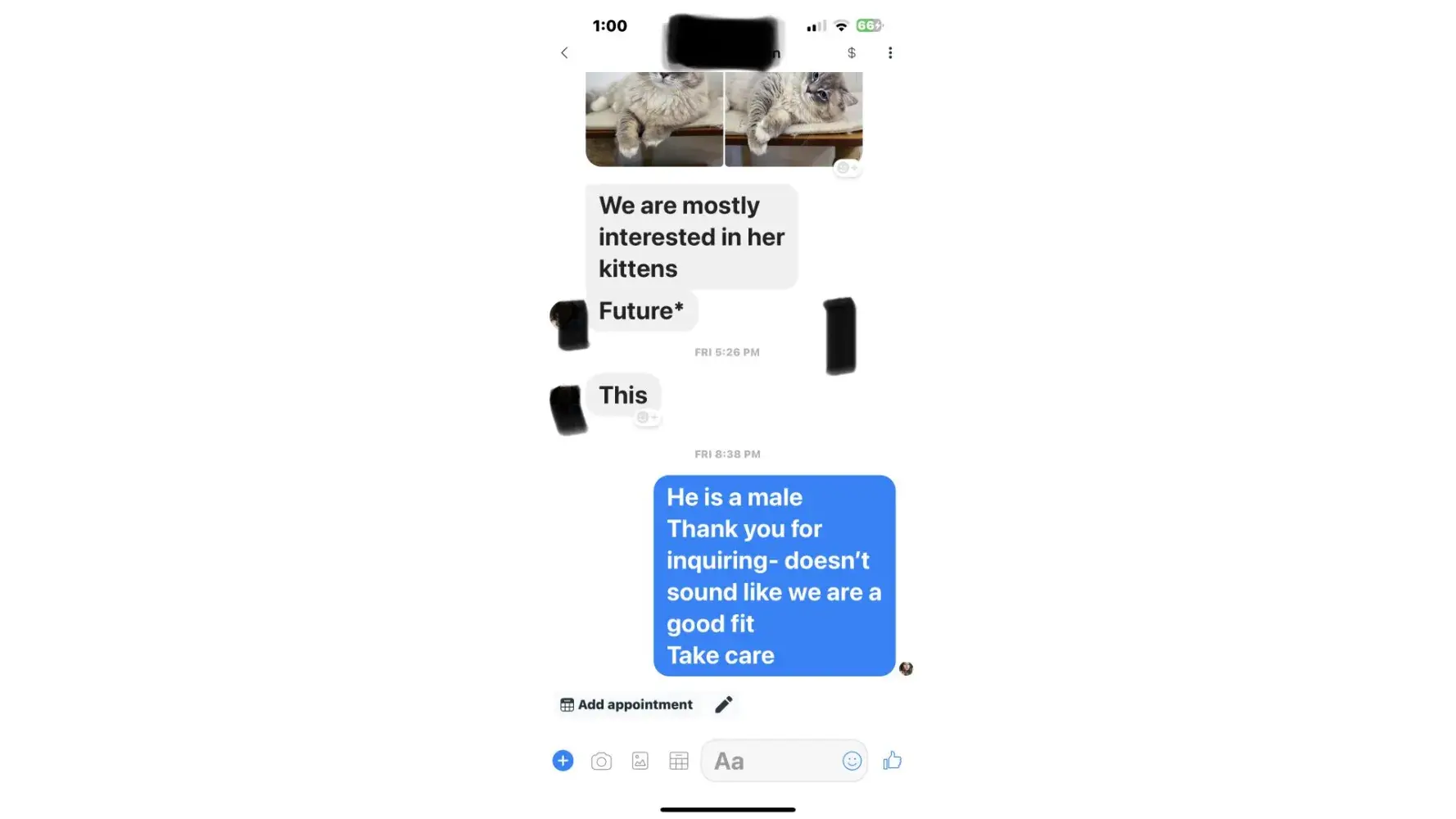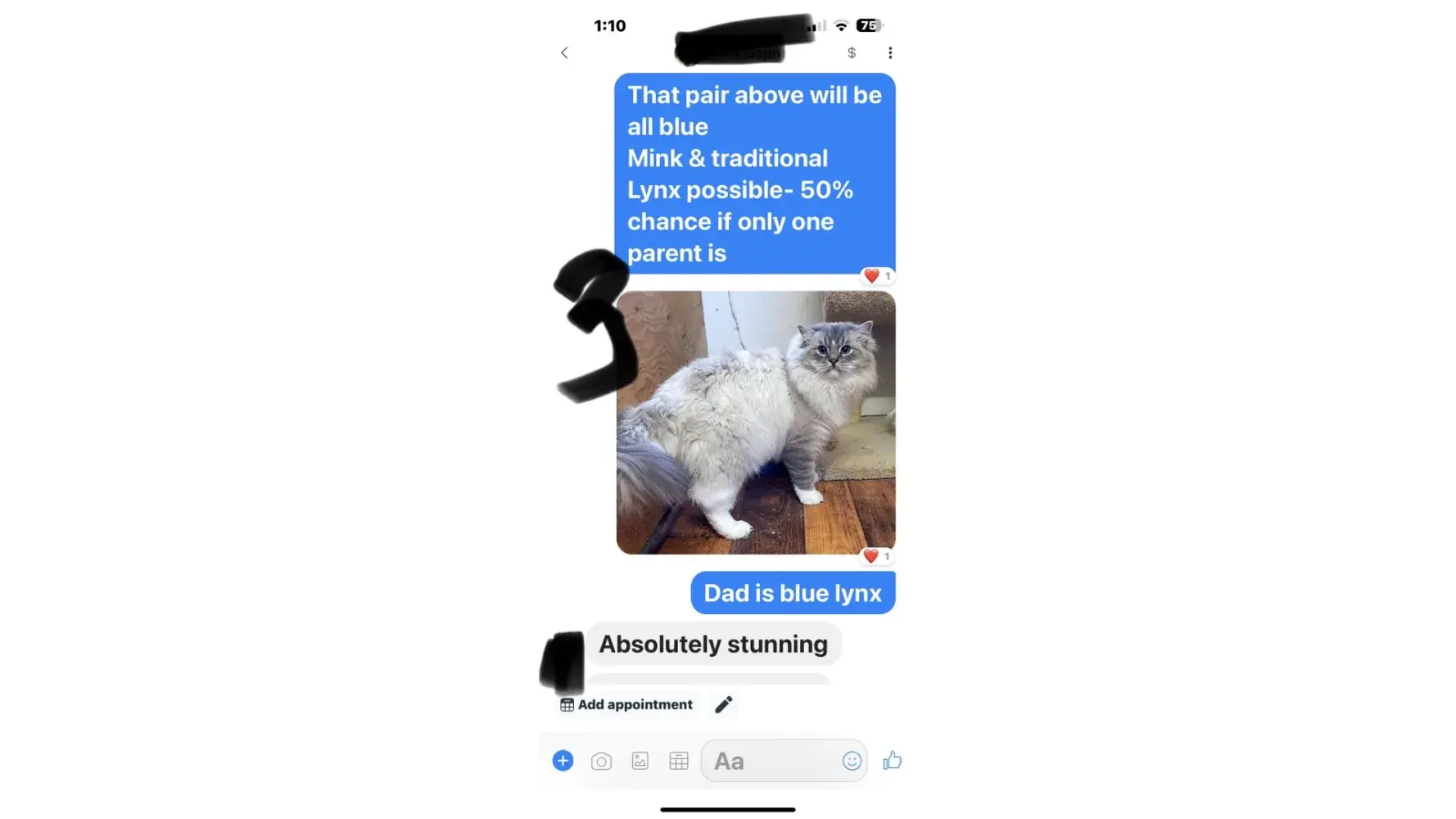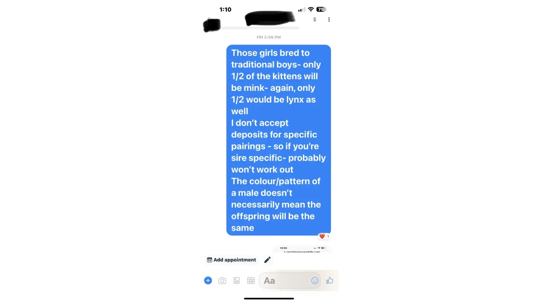 I’m writing this because she’s a money stealer, if you ask too many questions about the ragdoll, she will block you. Just like she did to me, having a ragdoll is a life time commitment, if I am asking if she can breed certain traits and characteristics of a mink ragdoll and she blocked me. Lost my respect, there are so many better breeders out there.