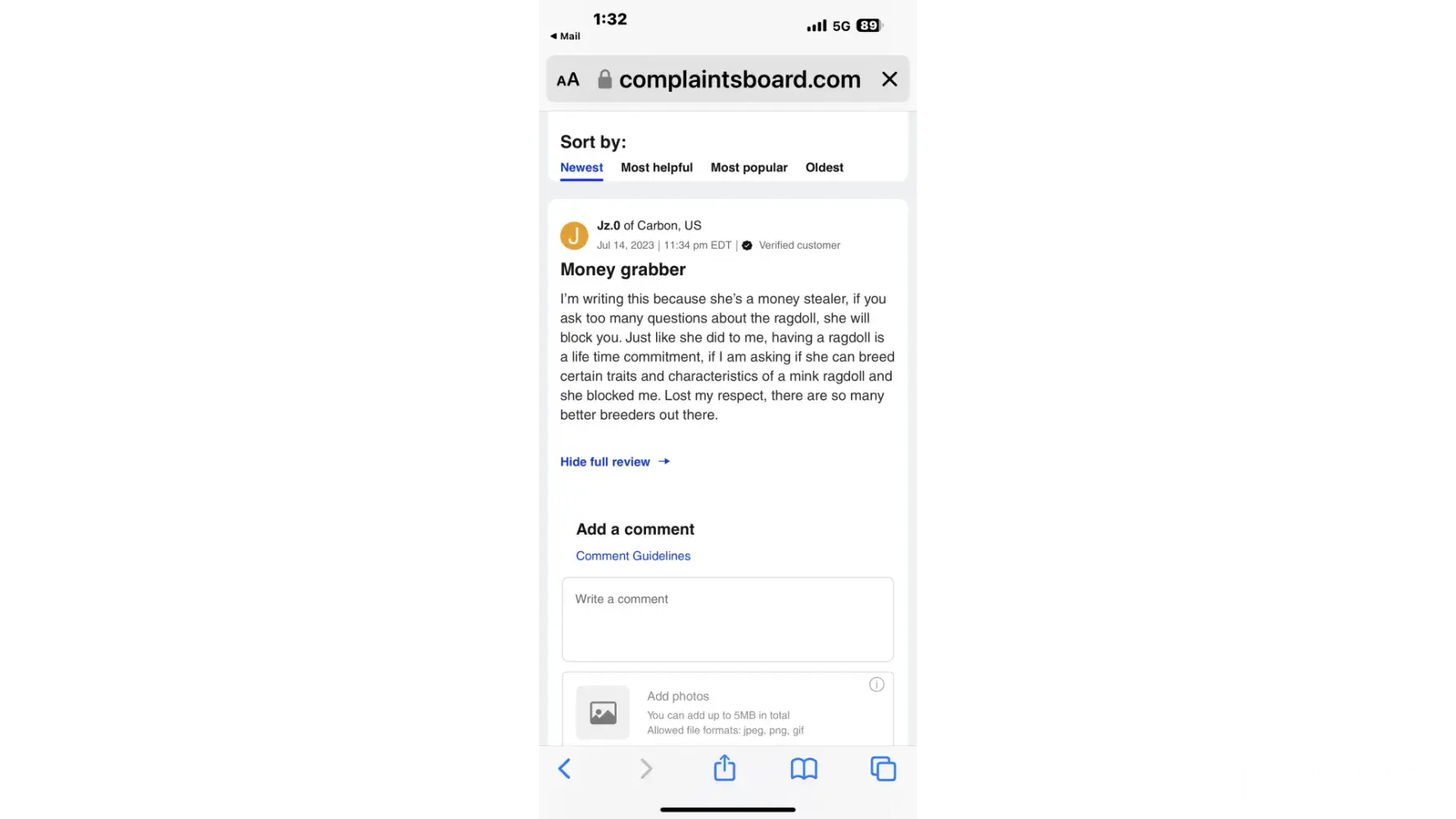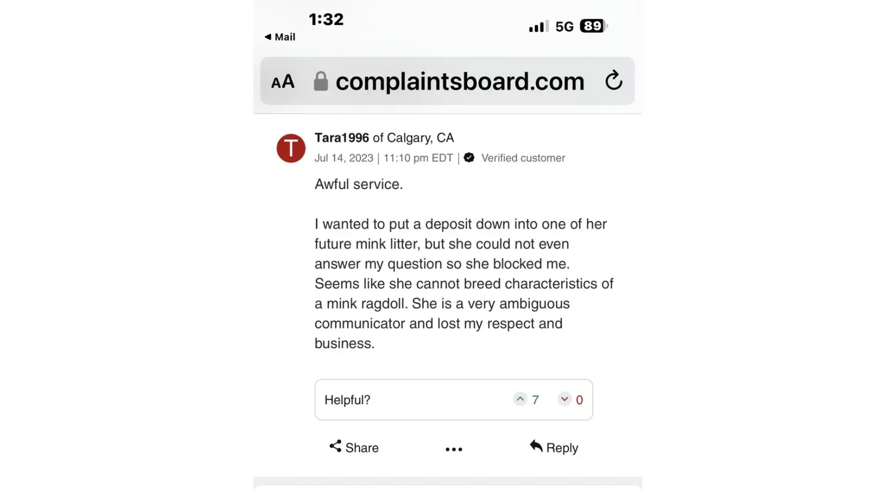 Read full complaint and 7 commentsOverview of Ranchin Ragz Ragdolls complaint handling
