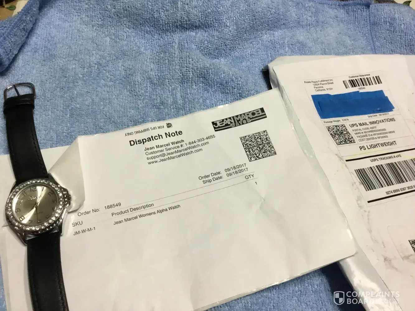 Photo of watch and envelope it came in.