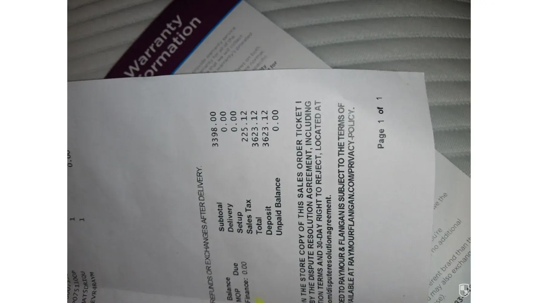 This was financed and out of good faith, I paid the sofa off in full which ended up being over 3 grand.