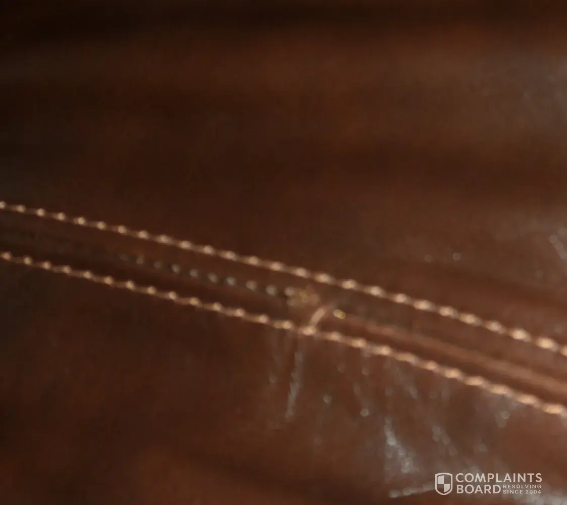 Here is what happened to the two full size leather reclining sofa sets (Sku# [protected]) – after few days of purchasing stitches from one of the seats opened. One of the reclining seats does not stay stable and is wobbly. Threads are hanging out randomly from various parts of the seams on both the sofa sets.