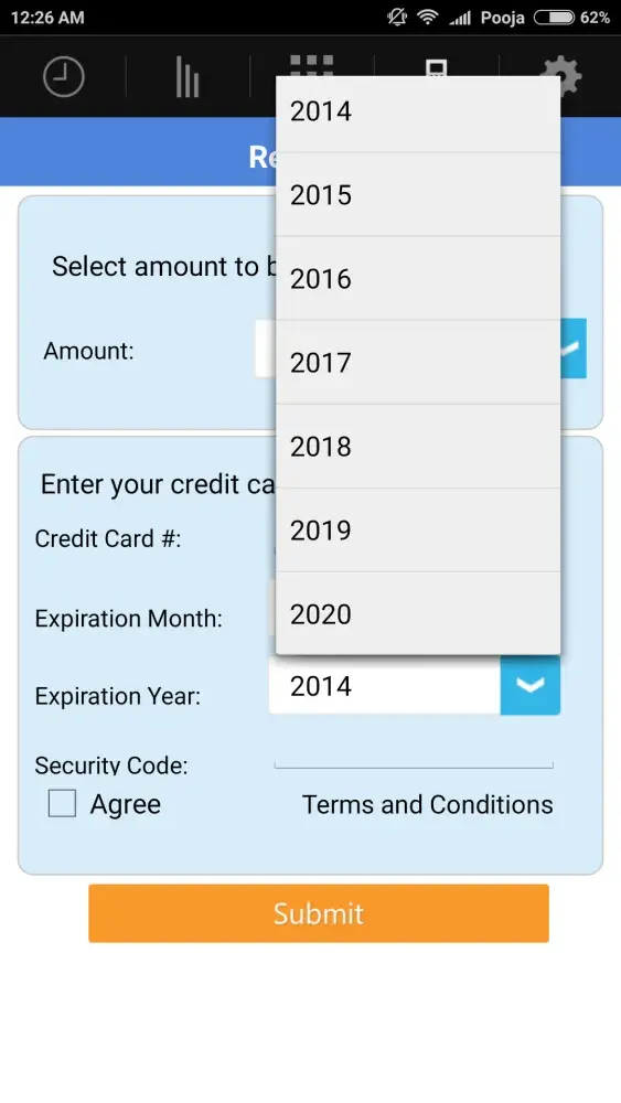 I have downloaded this app. However it doesn't allow payment from debit card. I do not have credit card as I am new here. So I tried using my friends credit card. When it ask for the card expiration details there is a drop down for year which is updated upto 2020 only. And my freinds credit card is expiring after 2020. So I am unable to activate this application. Please help me to resolve this issue. I have attached screenshot of the same. My email id is [protected]@gmail.com.