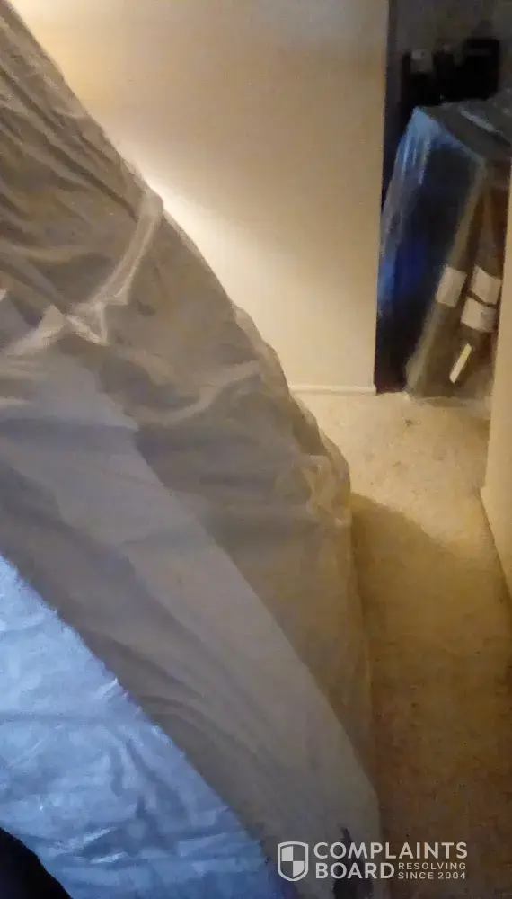 The delivery came for the third time and I only accepted one piece and I decided to keep the other damaged products because I lost faith I would ever receive a quality product at this point. No covers were used and when they left I noticed my carpet was dirty, they bumped into and caused damage to my stair rail and my walls on the stairway looked as if i let 15 loose 3 year olds rub their hands all the way up after playing in the mud.