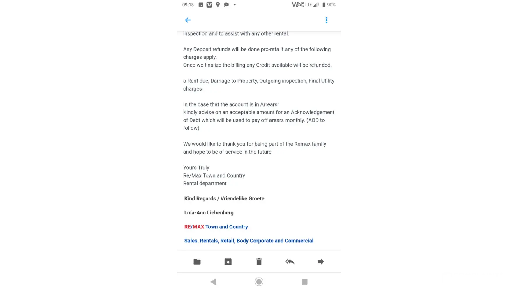 I'm currently crossed and disappointed after I've been loyal to you for almost 2 years I received an email from Remax on the 21st of of February asking to vacate the premises 28th February and that's such an unfair short notice, the reason was they wanna Renovate the premises.