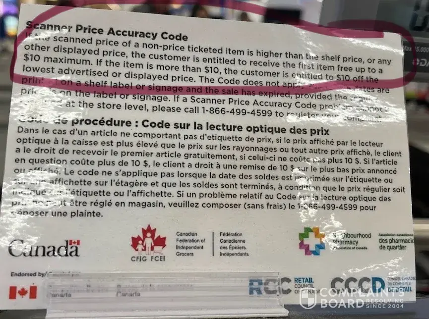I just visited Regina prince of wales drive super store today, there was pepper bag scanned wrong price 6.59$ and when I asked for price check the associate started yelling on me and refused to do even after checking and confirming that