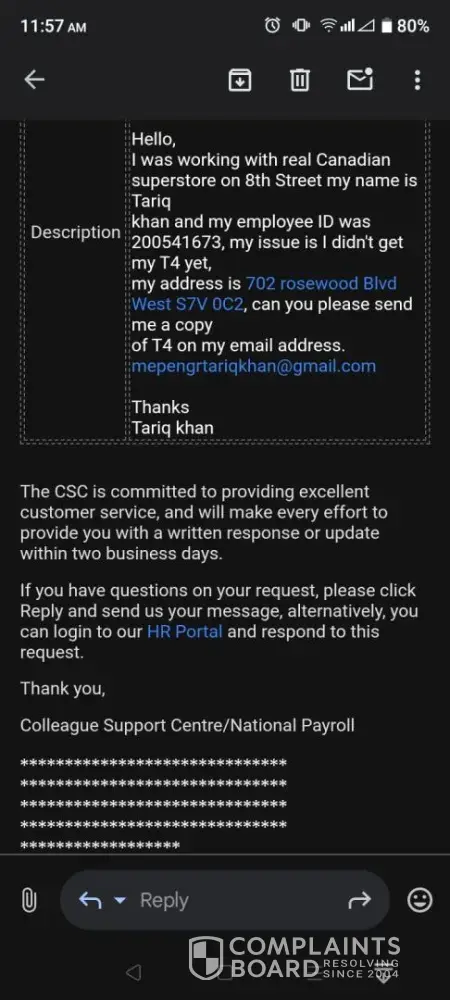 Read full complaintFormer employee t4 issue