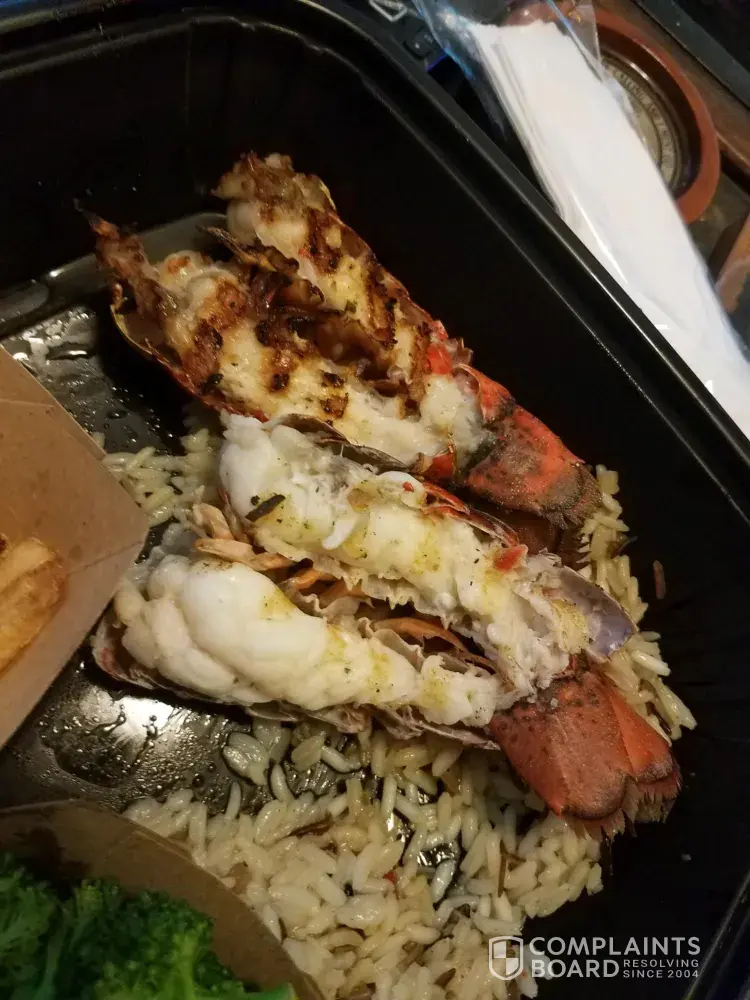 When we returned home, I opened my lobster tail dinner to completely disgust. To say that you as a company charge someone $30 for fresh, rock lobster tails is a completely and utter lie. The product I received could be called nothing short but a lie from what was advertise by your menu and your overall marketing as a whole. The Cajun chicken Alfredo also could be confused with a cheap TV dinner .