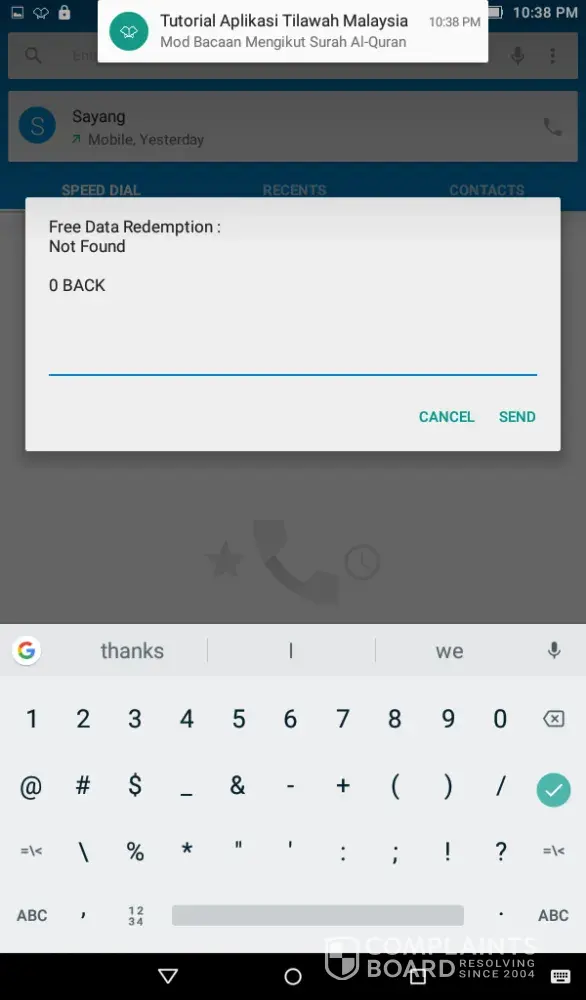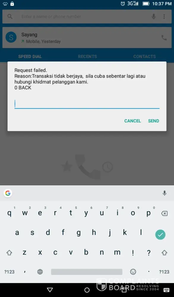 Saya ingin mengadu tentang kad sim saya tidak dapat menghantar SMS kepada semua nombor. Saya telah cuba memasukkan kad sim saya pada telefon lain, tetapi tetap tidak dapat menghantar SMS. Saya memerlukan bantuan anda