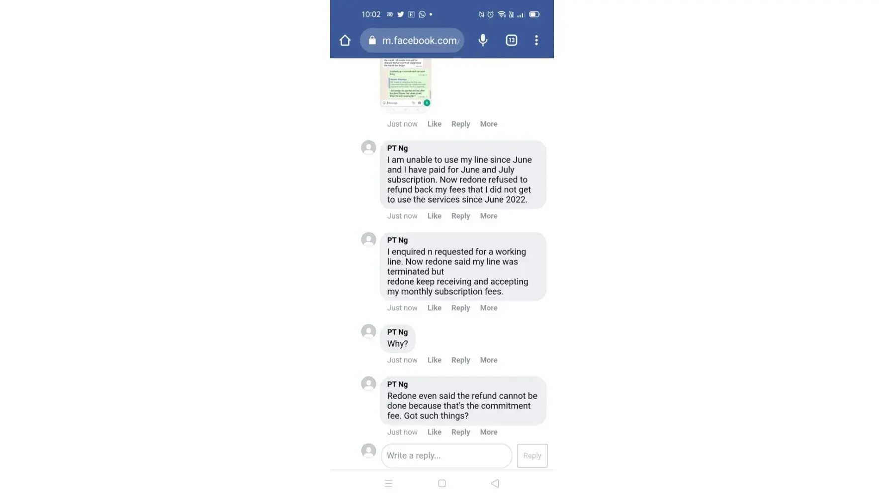 My brother currently used XOX telco. On 23/11/2023 redone salesman at Mydin Taman Batik had offer to upgrade the plan to 5G internet services without changing telco for RM10.00. they also identify themselves as XOX salesman. after that they change the simcard to redone simcard without customer consent. This is fraudulent and sales without consent. Please do take internal action before authorities are involved.