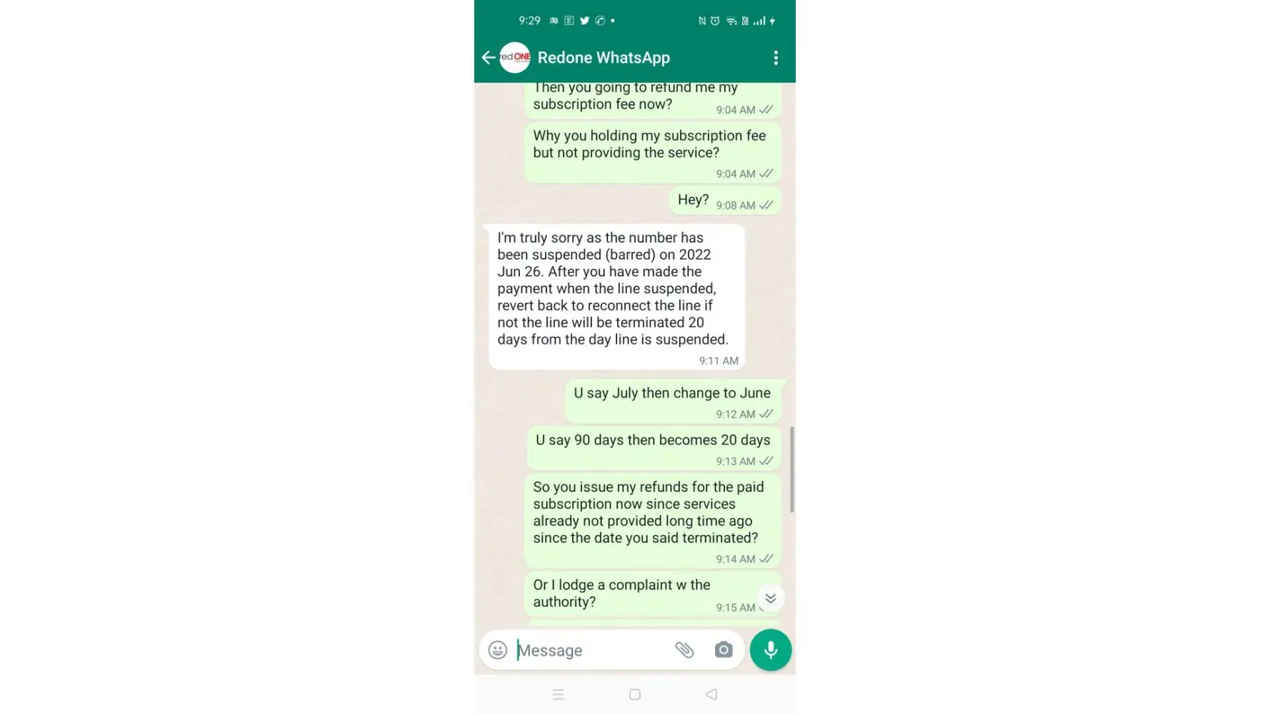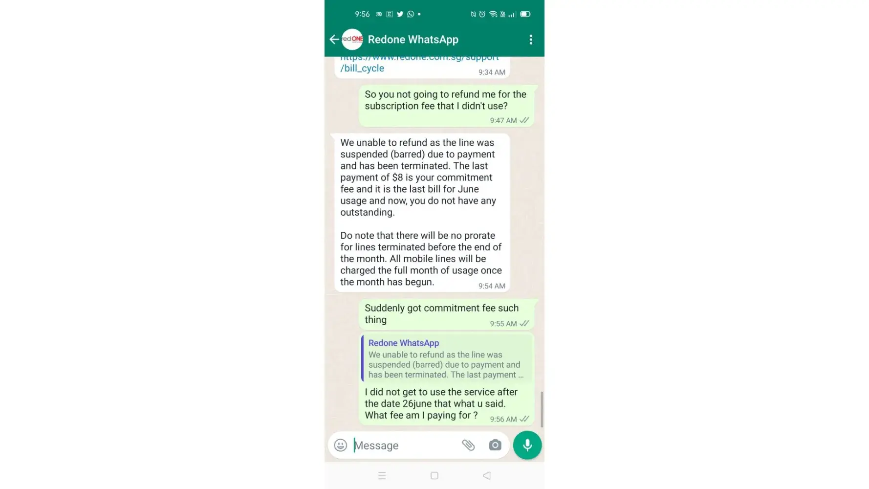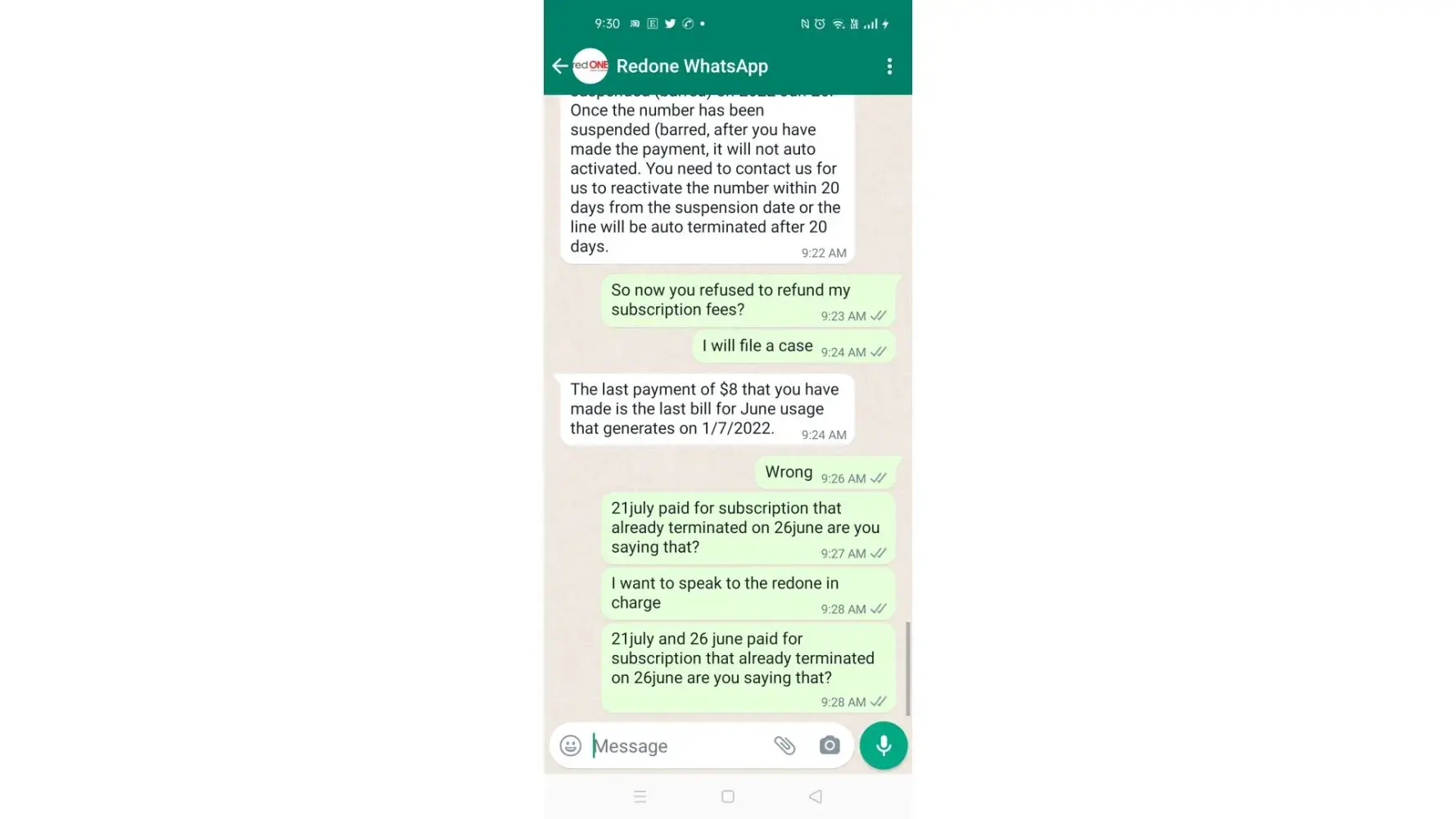I'm very sad with redone service. I terminated my line on Sept 2019. However, the agent did not terminated my number and sadly, he used my line number without my permission. For next month, I received message from red one about payment I need to pay (RM180). After I settle made the payment, again, I received phone called from redone center that I have another balance amount that I need to pay RM150. What's this? I already made payment, RM180, amount that I didn't used and today, I need add another billing for RM150. I hope you can help me. My line number is [protected]