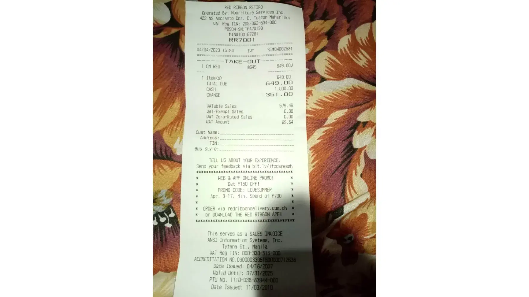 Goodeve po , Gusto ko magcomplain regarding sa staff nyo sa gmall talamban area, Experience ko pagbili ko dyan hindi nagbibigay ng receipt, Kaya tinanong ko yung staff saan ang receipt nito ang sagot niya manual lang daw po muna, Ang sabi ko bawal yan boss hindi ka magbigay ng receipt kahit nagmanual kapa, Pag sabi ko dali2x sya napagbigay agad, Nasaisip ko ilan na kaya bumili dyan sa red ribbon sa gmall talamban na hindi niya nabigyan ng receipt , Concern ko lang nito , Hirap po ganyan baka hindi ma punch ng staff nyo maging pera pa agad , Concern Citizen po ito, Thanks