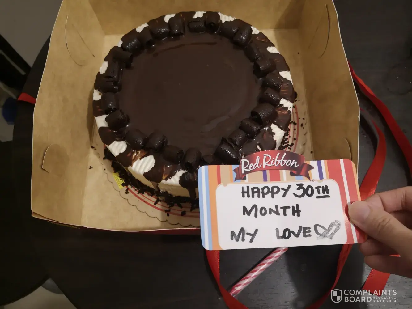 Red Ribbon Creamy Caramel Cake / im complaining about the lettering in the cake that i ordered.