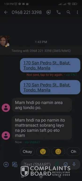 I ordered online this 17 August 2021 and was expected to be delivered at 2:00 pm as a surprise to our employee. on Address and store location i did put that it was in Tondo and your system showed that Red Ribbon Taft is the branch that can cater the delivery. The branch texted my staff only to find out that they will not transact because it is too far. Even they were informed that it was paid already they did not reply anymore with my staff. They insisted that they will not deliver it anymore. Even it is small amount, it is a surprise and it was already paid and its your responsibility to tell the customer before paying that the place is not feasible to deliver.