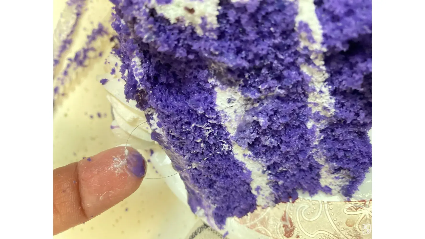 Ordered an Ube round cake From the Mira Mesa red ribbon location. Paid online picked it up later on that day had a birthday party served the cakes out to my guest and one of my guest pulled a long black hair out of their mouth that had been combined in the layer of cake I was so embarrassed. Keep in mind I’m a cut and blonde there’s no black hair in my head. None of my guest had black hair. I Call the store asked for a manager they stated that there was nobody available call back tomorrow morning I called the location back the next day in the morning and was told the manager wasn’t going to be there until 2 o’clock called around 2 o’clock asked for manager tried to explain the situation but she was too busy yelling talking to everybody else about the issue wouldn’t let me finish a sentence. She kept over talking me. I have never dealt with such an unprofessional rude person there in that location. I do not understand how she became a manager she had no customer service skills no phone etiquette. I have enclosed photos for everyone to see how disgusting and how upsetting and how disappointing. The embarrassing moment of a celebration that was meant to celebrate a birthday ended up being a very embarrassing party. I believe everyone that attended that party has vowed never to eat or buy any cake from this location. Unfortunately it’s the weekend so I will have to hold off on reaching out to the health department especially in a time with Covid the way it is. It’s just utterly disgusting. This probably wouldn’t of escalated as much as it will if the manager at the Mira Mesa red ribbon in California would’ve listened and use her professional phone etiquette customer service skill that I guess she didn’t have so she could’ve used it this could’ve been avoided.