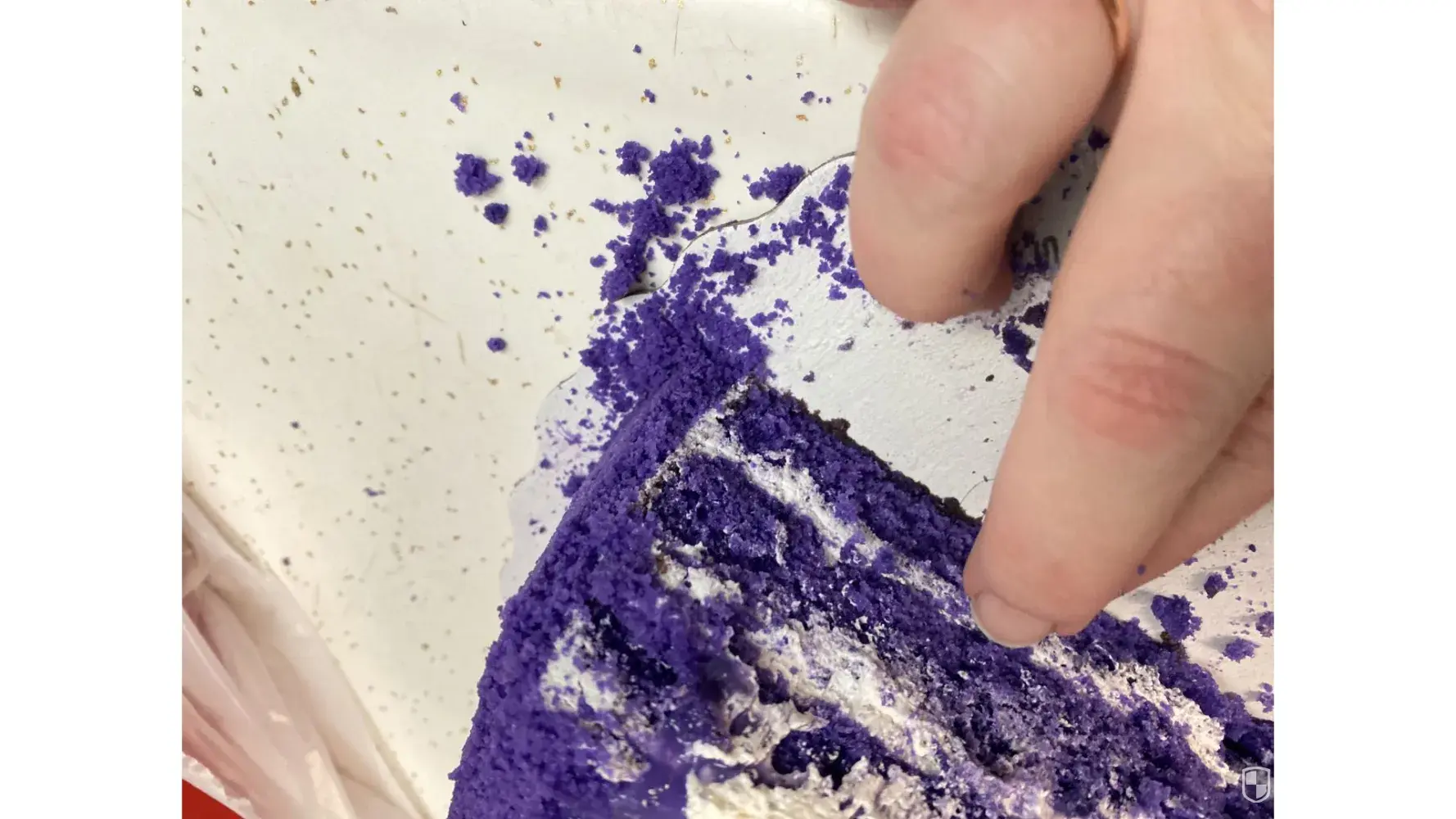 The cake is deformed, looks like an old stock with discoloration as yellowish portions in the cake (see pictures).