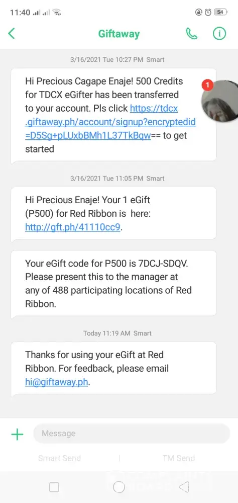 I have a complaint about this certain staff sa citymall sa sorsogon named 'reyna'. Umpisa pa lang, I already told her to just check my voucher, kung valid pa ba. Then suddenly, I just received a text saying 'thank you for using your egift at red ribbon' sabe ko hindi ko pa gagamitin ang gift certificate kase para sa birthday sana yon this coming april 17. Ang gusto ko lang ay magpareserve ng cake! Sabe nya no reservations daw pero ginamit pa din yung voucher ko!