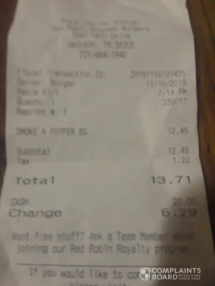 I recieved an email a few days ago from Red Robin, stating that on 10/01/19 they had