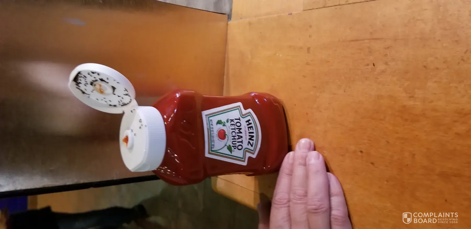 On September 10th of this year at around 5pm, I treated my bonus son and family to a Red Robin's meal for his birthday. We went to the Red Robin's located at 18650 Ford Rd. in Detroit (Dearborn) Michigan. While everyone was eating I had a ketchup bottle I used for my fries and I proceeded to eat. After I finished my fries I continued to use the ketchup for my burger and began eating it. One of the kids at the table wanted some of the ketchup I was using and when their mom took the bottle I was using and looked into the cap, she looked disgusted and showed it to the waiter and just said "dead ants!" The waiter also looked disgusted and I immediately left the table and went to the restroom and began throwing up. It was a terrible experience and I have yet to get a valid explanation from management. They went on to blame the manufacturing company and have not giving me any information to help me find out what I need to do to deal with this traumatic experience. I can't get the incident out my mind and it has definitely changed my appetite for burgers and restaurants. The manager let me take pictures of the cap and the number on the cap as well as the case he said it came out of but that has gotten me nothing. No explanation to why or who is responsible for this nasty experience I had at the restaurant.