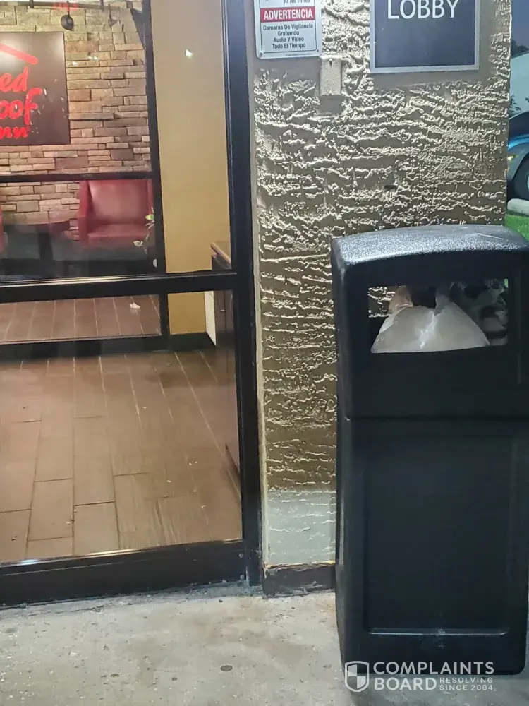 Oct. 15 - 17, 2021 - We have been to Red Roof Inn's before b/c we have a dog that travels with us and love that it's a pet friendly motel. This is the absolute worst one we have been to and will not return. Cierra checked us in and was not only unfriendly, she was downright rude! I asked if we could be on an outside part of a building and she just said "no." No reason, I think she realized I was not happy and finally said everything is already booked. Walking the dog throughout our trip we could clearly see there were at least 2 other rooms that people had checked out of, but were not cleaned and weren't used the days we were there. There was only 1 roll of toilet tissue in the bathroom for 3 nights. Went to the office and asked for a couple more, Cierra gave me 1 roll. I asked for another one and she walked away. I have never experienced such RUDE customer service. Had to go to front desk every day to get more toilet tissue. Also, the garbage cans were full/overflowing when we arrived at check in and were never emptied the 3 nights we were there (photos below). On our way out, there were 3 people in the front office talking and laughing, perhaps someone could have emptied a trash can eh?