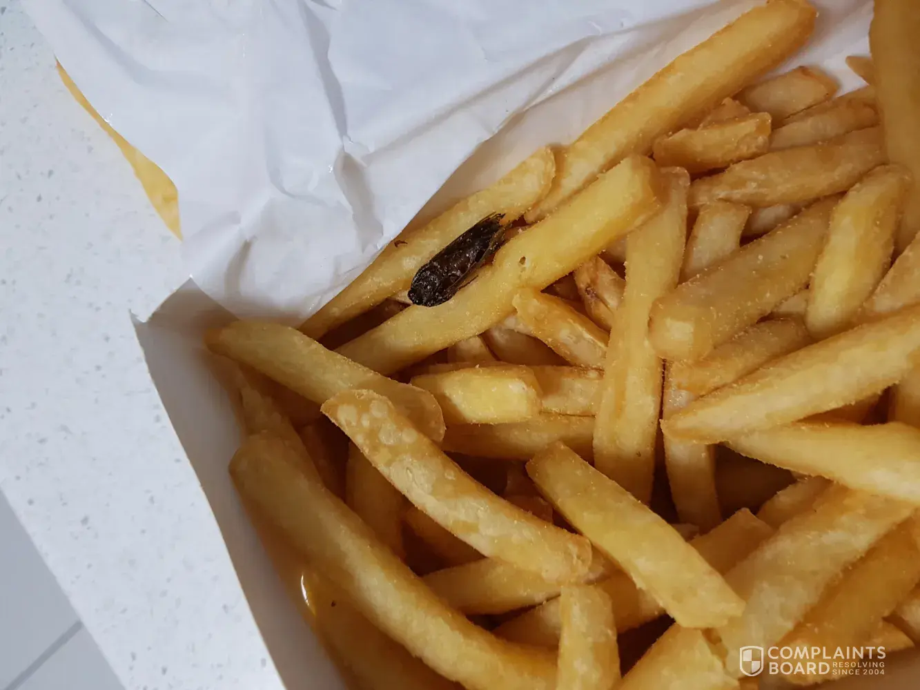 When my husband got home with the family sized chips I opened them to dish them up. I had taken out a handful when I saw something brown. On closer inspection we discovered a moth in our chips that was deep fried so obviously cooked in the oil with the chips. We called the store to complain and we were told by the manager that there couldnt possibly be a moth in there as he cooked them fresh himself. So basically accusing us of putting it in there. I have three young children under the age of 4... I don't have time to deep fry a moth and put it in our chips. It is clearly cooked in oil and covered in the salt. Very disappointed and disgusted and we will no longer be buying our whole chooks from Red Rooster!