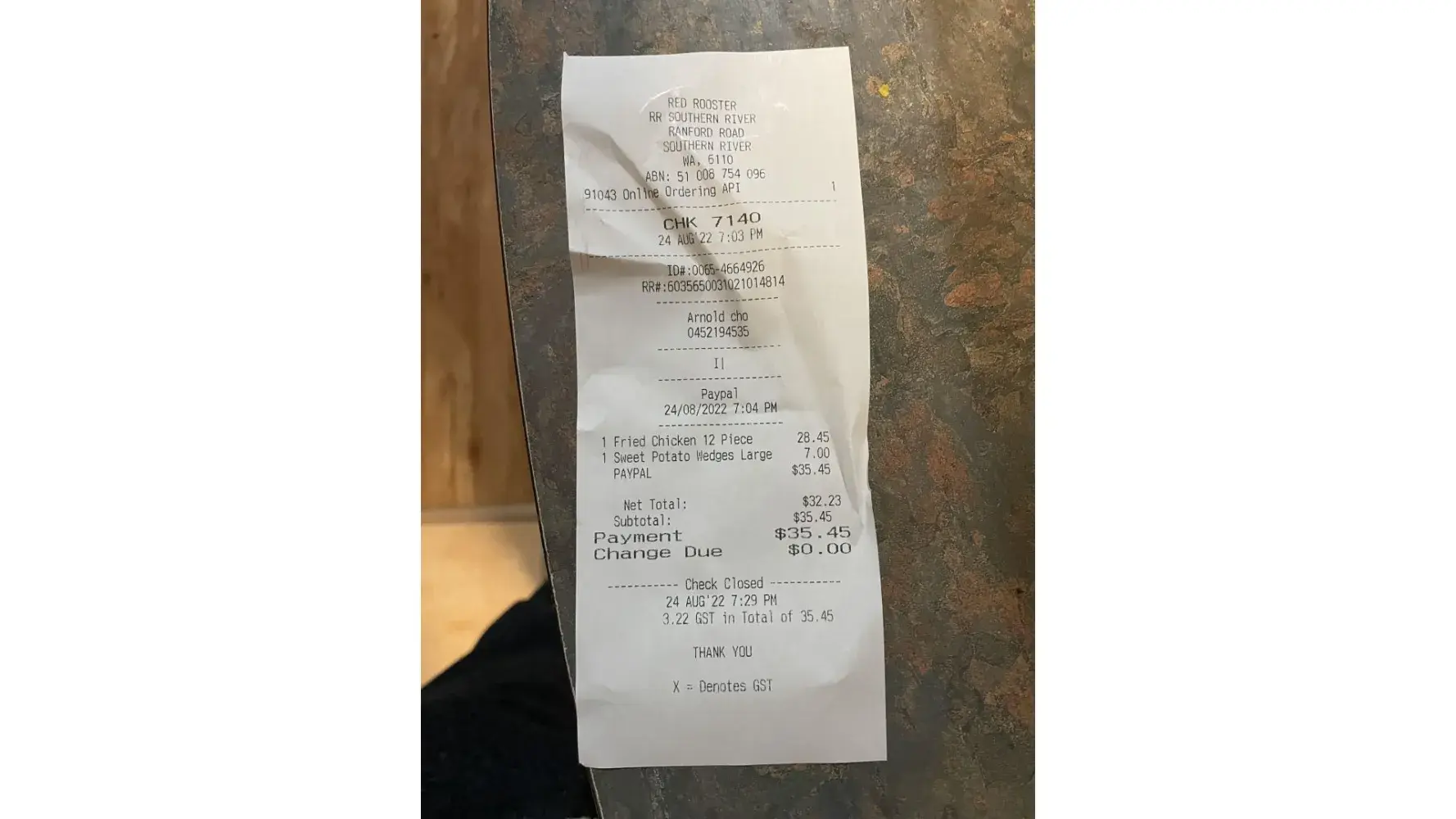 I was sitting outside of red rooster eating my rooster rolls in my car waiting for a KFC worker and red rooster worker to take back to yanchep at 8pm to 9.30pm tonight the 7th of November.