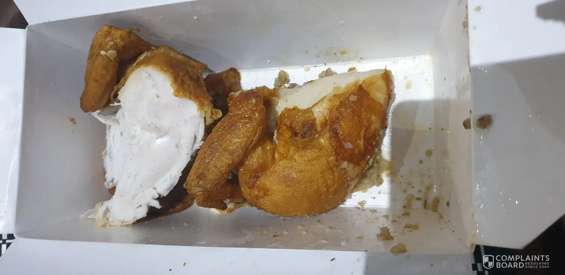 Ordered Red rooster, 20/02/22 @ 11.38,order number 2617 from Baldivas South bound store. When I recieved the order the extra fried chicken I ordered was not as I requested, ordered 3 pieces legs or thighs but recieved breast which was very greasy and very very dry, un edible. With the rest of the order the chip's were so salty they left blisters in my wife's mouth so threw them into the bin, had to use the nuggets in a sandwich for my grand daughter as the chip's were also way too salty for a 2 year old. I lodged an online complaint about the poor quality order at approximately 12.30pm same day. At 3.53pm, 22/02/22 a duty manager named Hurshal called back to discuss the matter, after discussing this matter he tried to resolve the issue by offering to replace the order and give me a full refund. This I thought was generous but was more than happy with, he also said he would personally make the order. When I went back to the restaurant 25/02/22 and spoke with Hurshal he and another manager refused to honour the resolution call and only offered to replace the fried chicken part of the order, after a long discussion with the other manager he offered to refund the fried chicken and replace the fried chicken but would not consider any of the other item's which went into the bin due to very very salty un edible chip's causing the blisters in my wife's mouth.