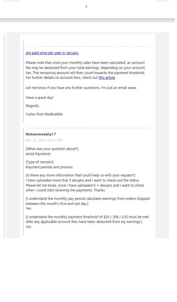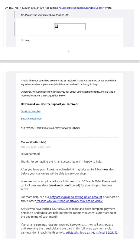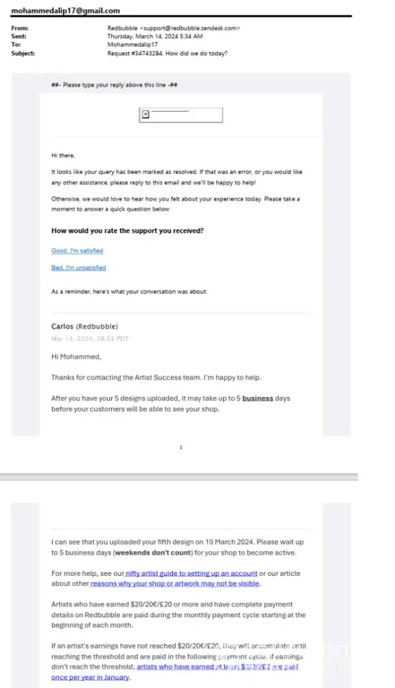 top of tht i cant speak to a single person who works as customer service at redbubble