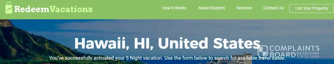I redeemed a vacation voucher through Redeem Vacations