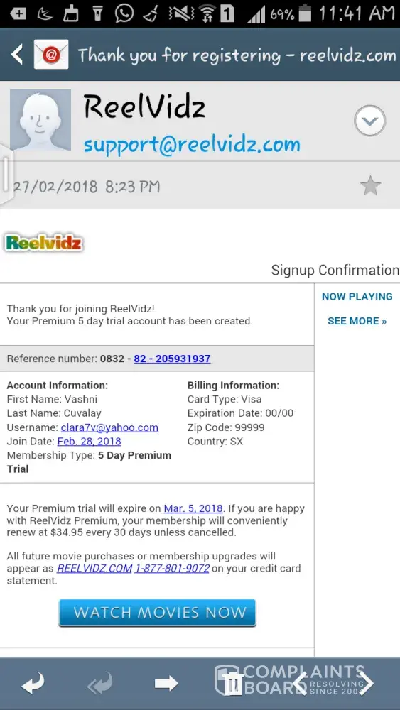 Read full complaint and 21 commentsReelvidz complaints: history and resolution overview