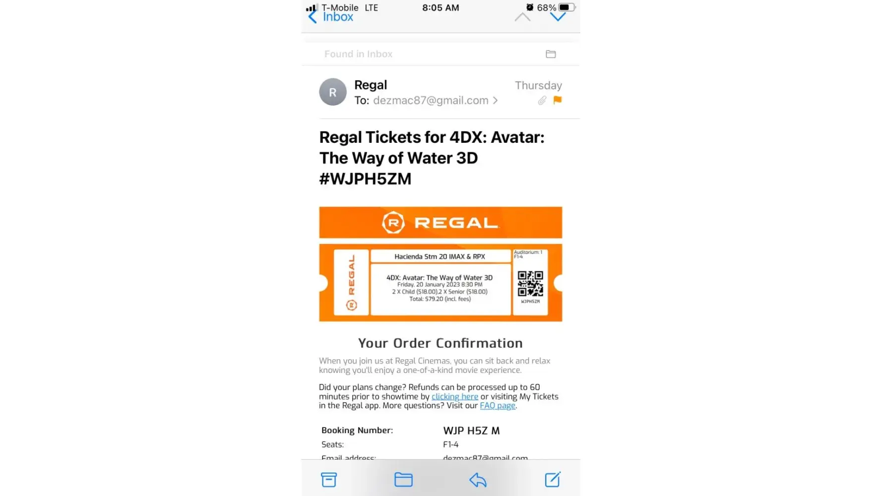Upon receiving the confirmation WPGK8D4 We immediately saw they were not for the next day Saturday 1/21 at 505pm which we were trying to book, but were for a show that had already been running for over 30 minutes!