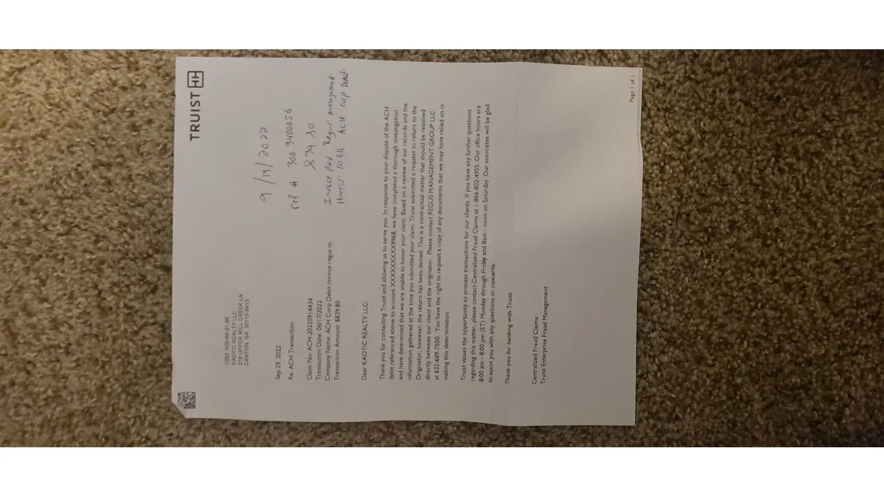 " invoice pay regus management harris 10611 ach Corp debit "