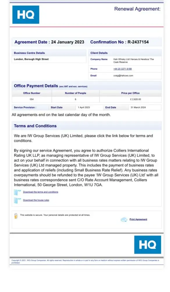 Desired outcome: For Regus/HQ to honour the end of contract date which is stated in my agreement.